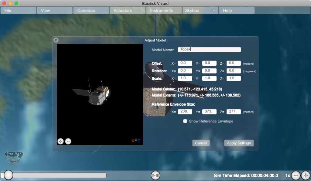 The following sections describe the basic user interface elements of Vizard. Some settings can be set via a Basilisk script as described in the BSK Scripting Settings.