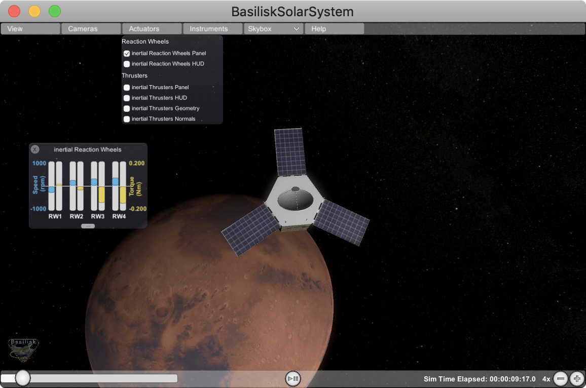 from within the Actuator menu bar item. Here the RW wheel speeds and